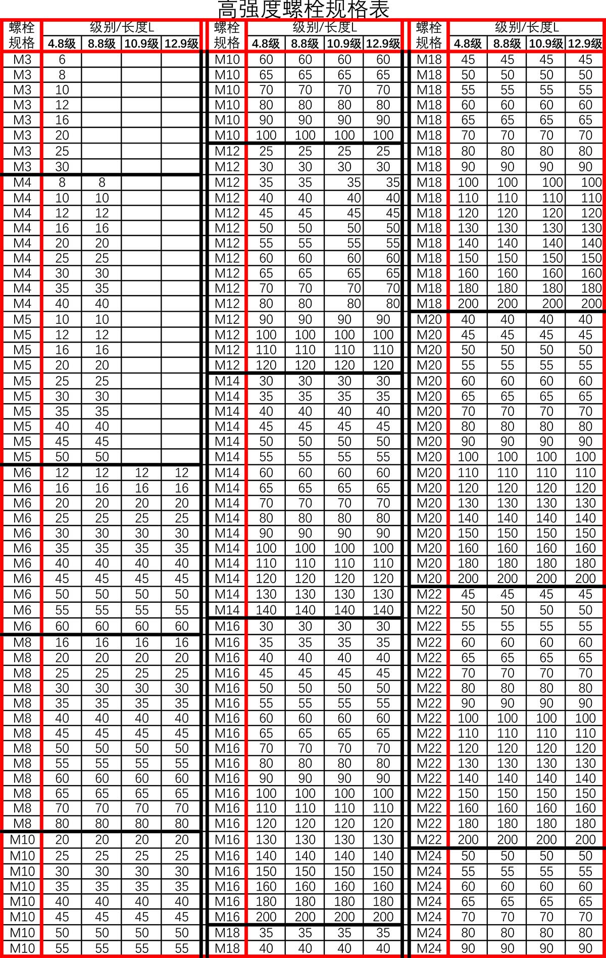 具體規(guī)格型號詳見高強度螺栓規(guī)格表